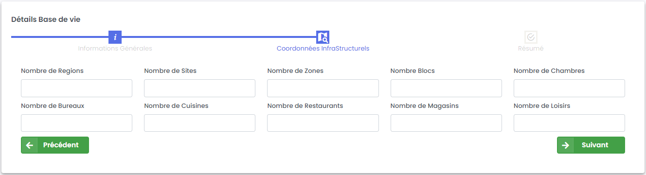 Chaque étape représente le Bordereau des prix d'une prestation pour le site choisit.
