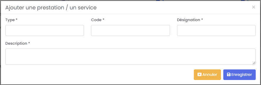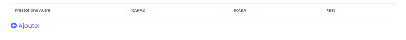 Si vous voulez insérer une nouvelle prestation, cliquer sur le bouton Ajouter en haut de la liste, un formulaire va apparaitre: