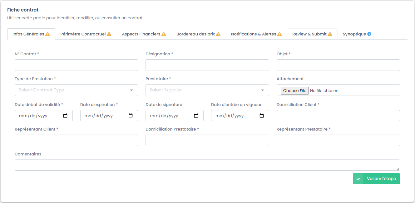 Dans cette étape, on identifie les informations standards relatives à cet contrat