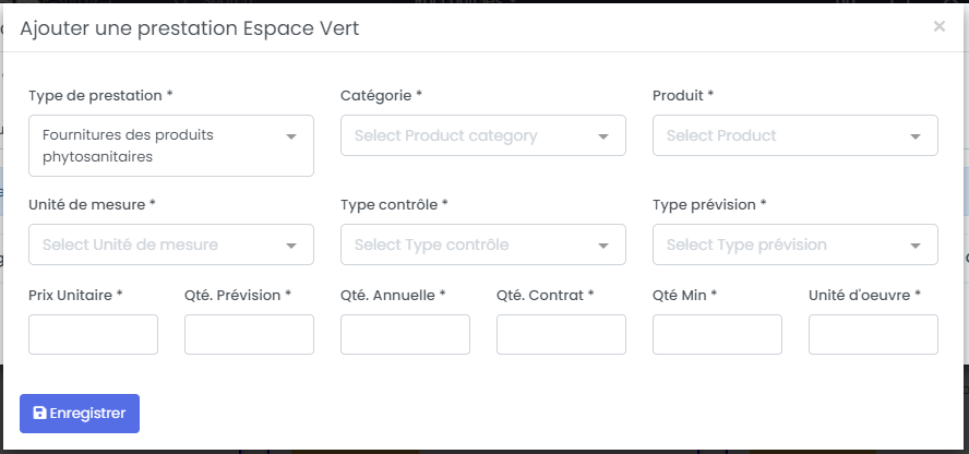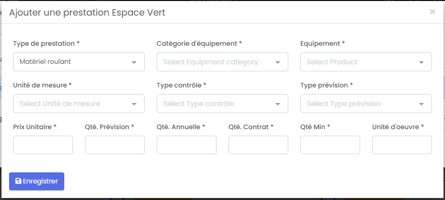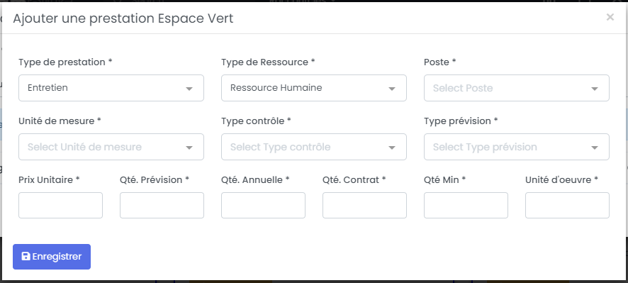 Pour ajouter les différents services de la prestation Espace Vert, cliquer sur: Ajouter