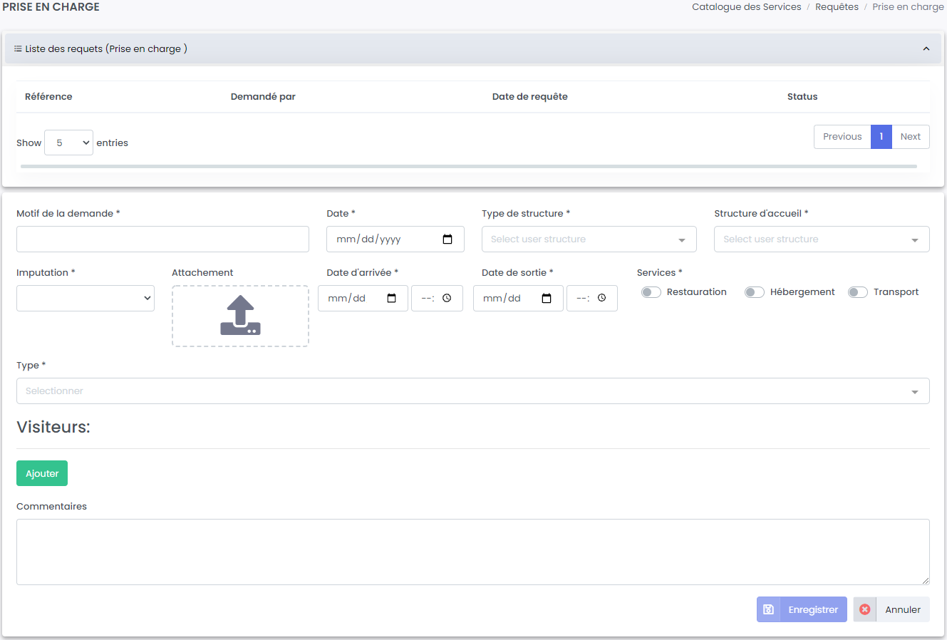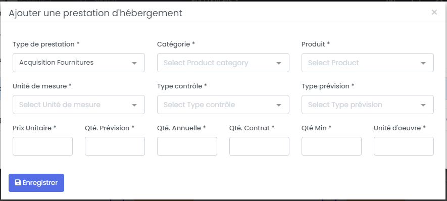 Pour ajouter les différents services de la prestation Hébergement, cliquer sur: Ajouter