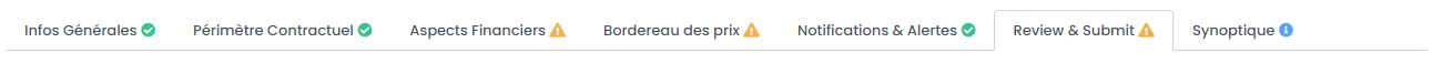 En validant cette étape, le système va vérifier que la somme de tout les montants renseignés égale le montant contractuel, pour pouvoir passer a la prochaine étape.