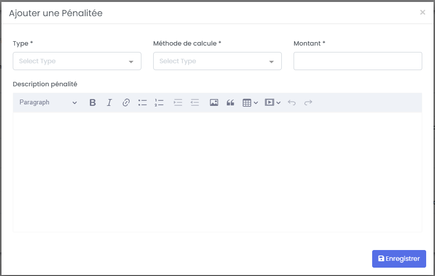 - Description pénalité: Plus d'informations sur la pénalitée (champ facultatif).