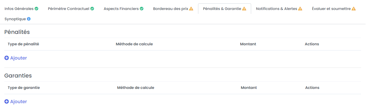 Dans cette étape, on identifie les différentes pénalités appliqués dans ce contrat, et l'identification de la garantie bancaire (si appliquable)