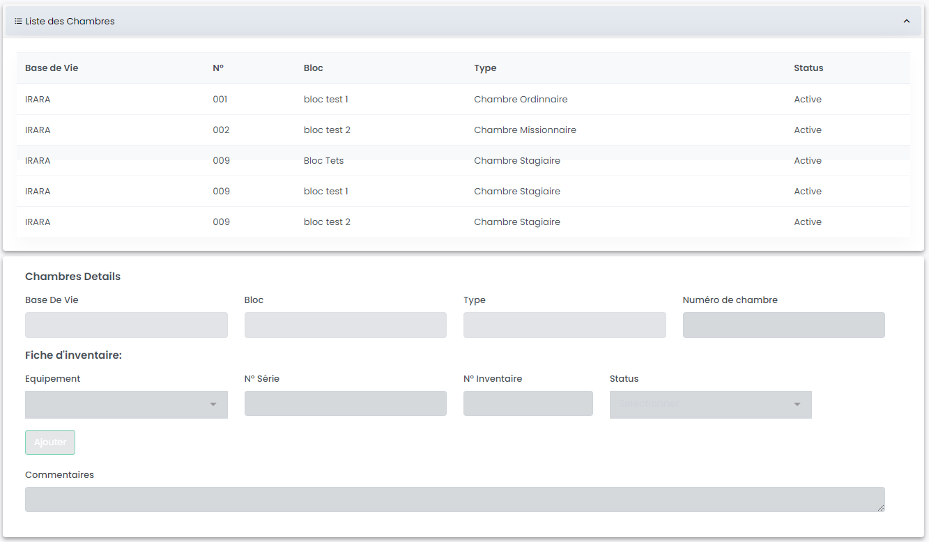 En cliquant sur le bouton: Ajouter, un formulaire apparait: