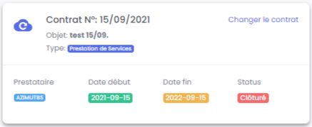 - Date d'expiration: La date fin du contrat. (Si la date de fin est arrivée, le système va automatiquement changer le statut du contrat en Expiré.)
