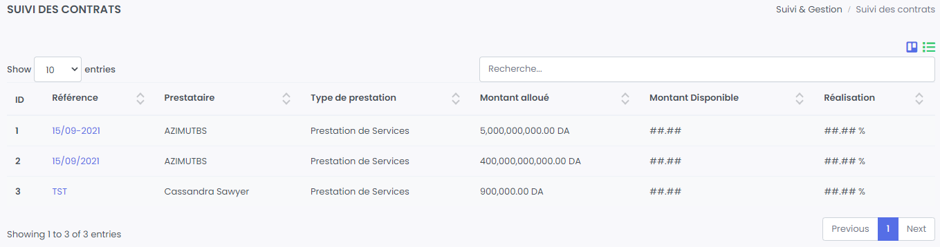 Exemple: Consommation de 85% du montant contractuel, CAMPLUS va lancer des alertes, pour que les responsables de la cellule du contrat peuvent prendre des décisions pour renouveler de contrat ou bien faire un nouveau contrat.