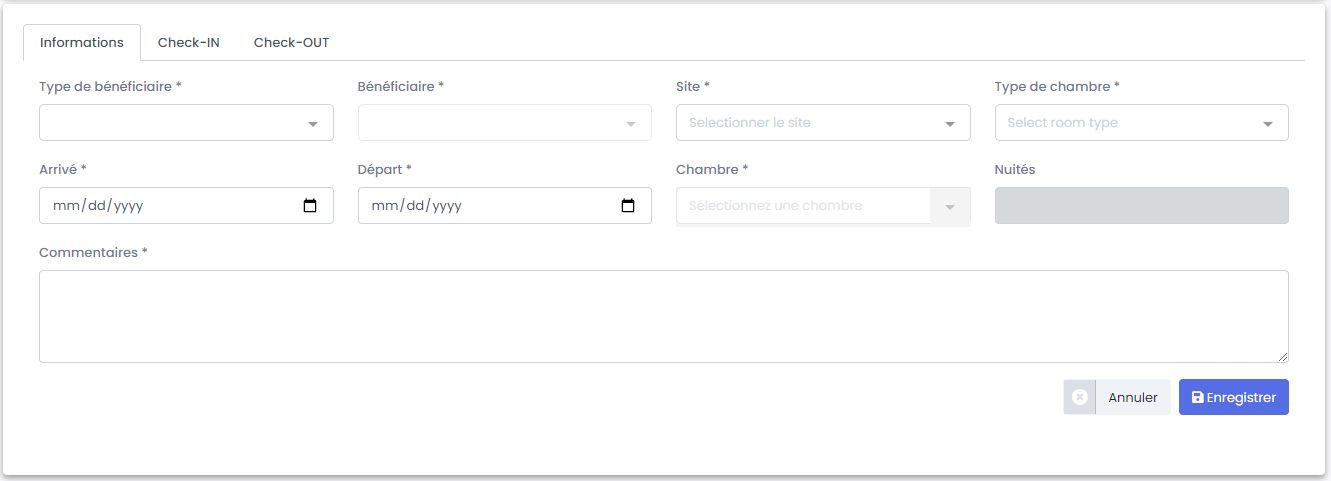 NB: Cette liste peut être gérée en allant vers: Assistance & Configuration > Listes déroulantes > Types des chambres