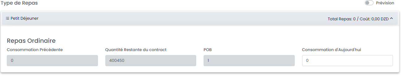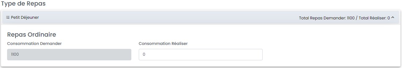 Type de repas: Sélectionner le type de repas, parmis une liste prédéfinie: