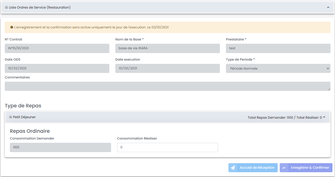 Une fois le contrat est validé, il ne peut être ni modifié, ni supprimé, et il sera exploitable par le système.