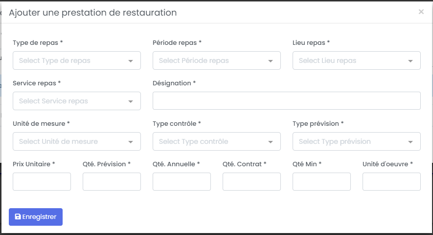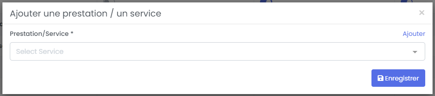 Si vous voulez insérer une nouvelle prestation, cliquer sur le bouton Ajouter en haut de la liste, un formulaire va apparaitre: