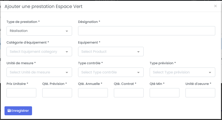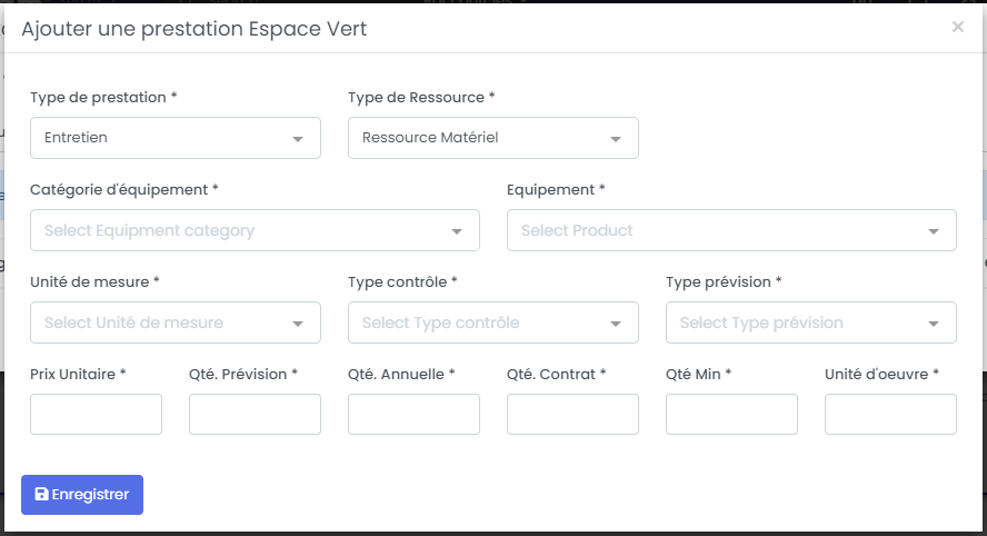 Pour ajouter les différents services de la prestation Espace Vert, cliquer sur: Ajouter