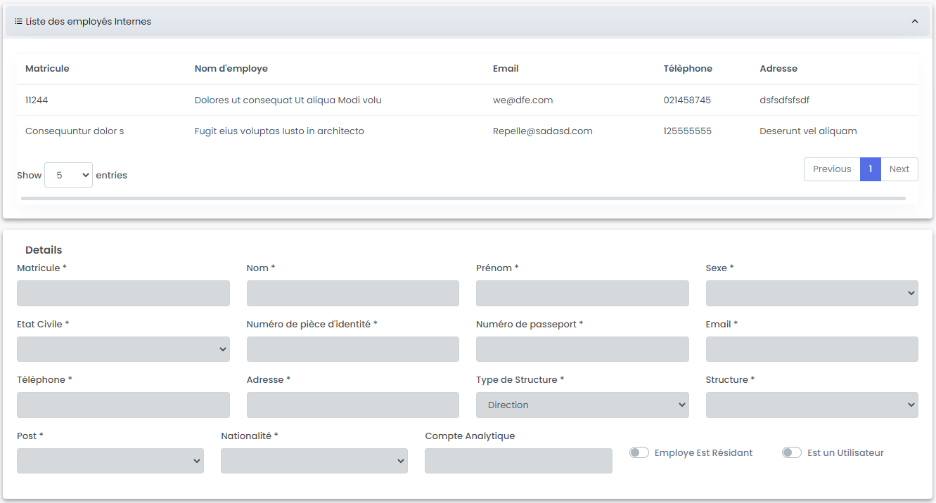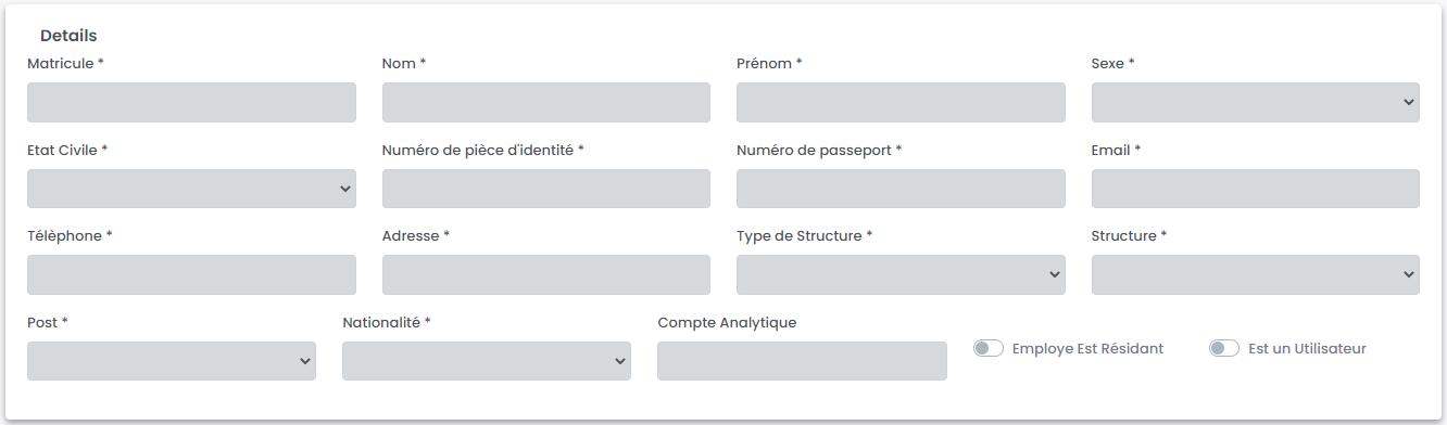 - N° Contrat: La référence du contrat (Le numéro doit être unique)