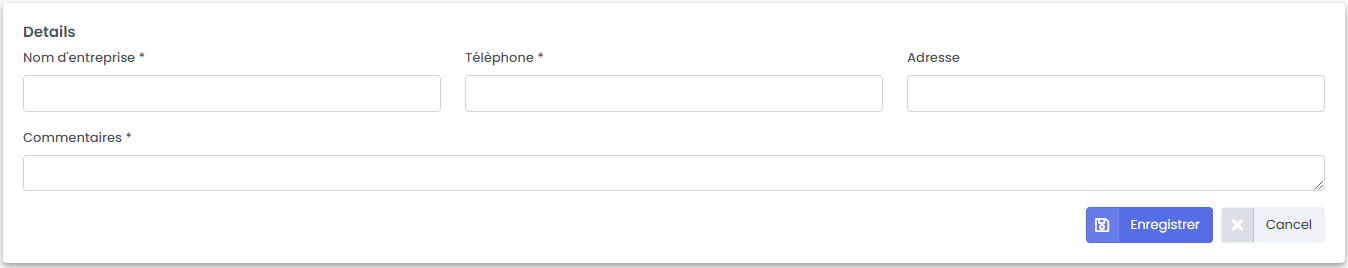 - Comentaires: Champ libre pour renseigner des informations supplémentaires pour le contrat.